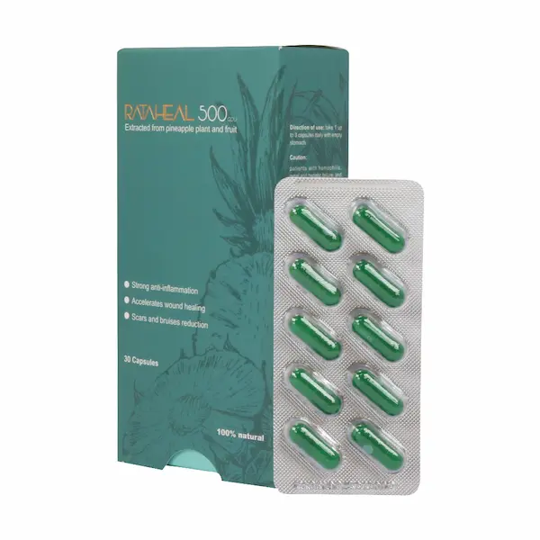 کپسول راتاهیل پویش درمان راتا، حاوی 2500 گرم عصاره ساقه آناناس می باشد که برای بهبود سریع زخم، کاهش اسکار و کبودی، کاهش التهاب بسیار موثر می باشد. میوه آناناس یک میوه گرمگسیری است که حاوی مقدار زیادی بروملین، ویتامین و املاح معدنی می باشد. بروملین، آنزیمی است که سلولهای مرده را به سرعت از بین می برد و سلولهای جدید و جوان را جایگزین می کند. آناناس حاوی مقدار زیادی ویتامین سی می باشد که باعث از بین رفتن چین و چروک، لکهای مقاوم، رفع اسکار می گردد. بروملین به کار رفته در کپسول راتا هیل به طور انتخابی از بیوسنتز پروستاگلاندین‌ها پیشگیری می‌کند. پروستاگلاندین‌ها شبیه هورمون هستند که غالبا وظیفه آنها آغاز فرایند التهاب و انعقاد خون در واکنش به بیماری یا جراحت است. با مهار این فرآیند، مصرف کننده قرص راناهیل، کاهش درد و التهاب را حس خواهد کرد. راتاهیل یک ضد التهاب و ضد درد قوی محسوب می شود.