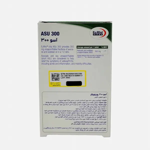 مصرف روزانه 300 میلیگرم ASU مانند همین محصول، به کاهش درد آرتروز و افزایش عملکرد مفصل کمک میکند.