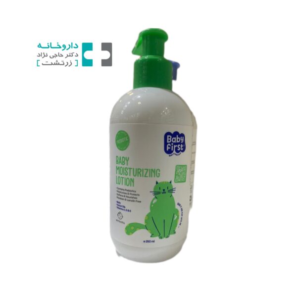 لوسیون مرطوب کننده بدن کودک بیبی فرست، حاوی روغن های گیاهی، بیوتین، ویتامین A, D, E می باشد. این نوع لوسیون مرطوب کننده، مناسب پوست بدن کودک می باشد. روغن های گیاهیبه کار رفته در این محصول، روغن جوجوبا، کالاندولا، هسته انگور، بابونه و پنبه دانه می باشند. لوسیون مرطوب کننده بیبی فرست، پوست را نرم و مرطوب می کند. از پوسته پوسته شدن پوست کودک جلوگیری می کند. مانع از خشکی و آسیب پوست بدن کودک می گردد. در ترکیبات لوسیون بیبی فرست، پارابن و لانولین به کار نرفته است.