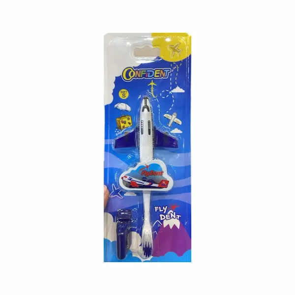 مسواک کانفیدنت کودک فلای دنت (مدل هواپیما)، برای کودکان طراحی شده. برسش نرمه و به لثه و مینای ظریف دندان کودک آسیبی نمی زنه. پد پاک کننده زبان داره. دسته این مسواک طوری طراحی شده که کودک به راحتی می تونه دستش بگیره؛ بدون اینکه مسواک از دستش بیفته. مناسب کودکان 3 تا 6 ساله. وزن سبکی داره. طراحی دسته بندی هواپیماست که کودکان رو جذب کنه. کودکان برای اینکه بتونه با مسواک هواپیماش بازی کنه کم کم میل به مسواک زدن پیدا می کنه.