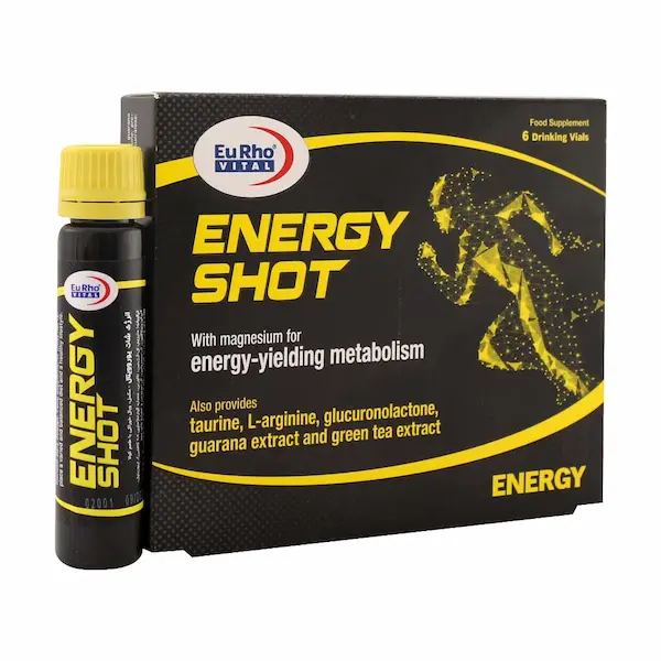 ویال انرژی شات یوروویتال، حاوی ترکیبات بسیار موثر در افزایش انرژی و رفع خستگی و ضعف می باشد. استفاده از ویال انرژی شات برای افراد ورزشکار و افرادی که فعالیت بدنی زیادی دارند؛ انرژی شات یوروویتال حاوی چای سبز، عصاره گوارانا (کافئین گیاهی)، اینوزیتول،گلوکورونولاکتون، آرژنین، تائورین و سیترولین می باشد.