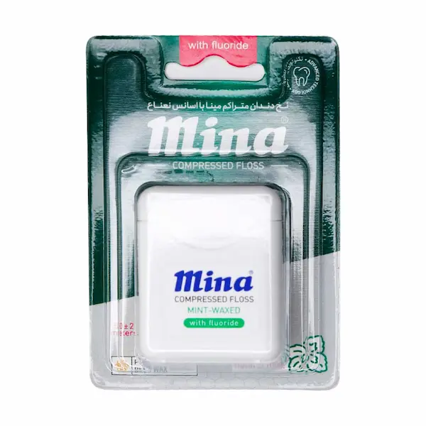 نخ دندان مینا حاوی اسانس نعنا است و هنگام استفاده حس خوشآیند و خنکی ایجاد میکند. این نخ دندان مینا دارای کیفیت بالایی است که در آن از نخ ۴ لایه پلی آمید ۶ و همچنین موم طبیعی زنبور عسل جهت قوام هرچه بیشتر نخ استفادهشده است. قبل و یا بعد از مسواک زدن میتوان از نخ دندان مینا جهت تکمیل بهداشت دهان و دندان استفاده کرد ازآنجاکه مسواک نمیتواند به شکاف بین دندانها نفوذ کند، استفاده از نخ دندان به سبب برداشتن ماندههای غذاها حتی تا زیرخط لثه، در کنار مسواک بسیار ضروری است. نخ دندان مینا مانع تشکیل تدریجی جرم در دندانها شده و از ایجاد پلاکهای میکروبی، بوی بد دهان و پوسیدگی دندانها جلوگیری میکند. مسواک زدن بهتنهایی حدود ۵۰% از پلاک درون دهان را پاک میکند. تحقیقات نشان داده است هنگامیکه مسواک زدن با نخ دندان کشیدن انجام شود حدود ۷۰% از پلاک پاک میشود. پاکسازی با دقت باقیمانده مواد غذایی بین دندانها برای بیمارانی که دارای لوازم ارتودنسی، ایمپلانت و پل در دهان میباشند بسیار اهمیت دارد.