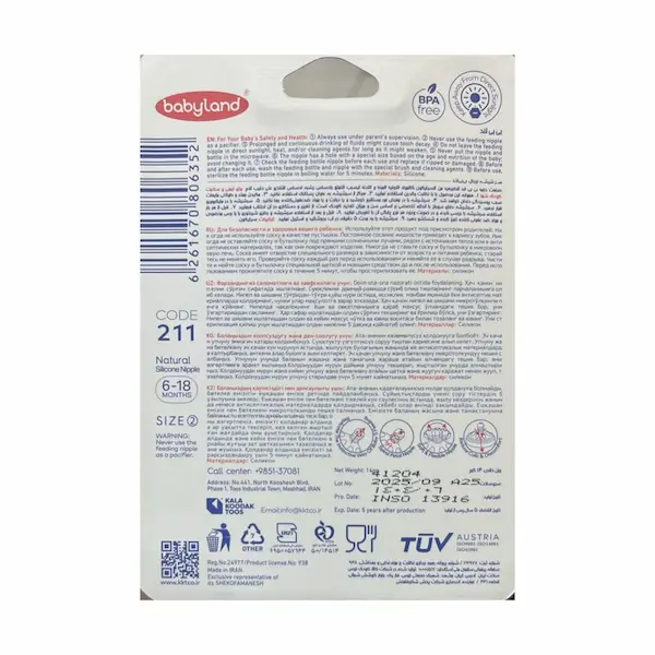 سر شیشه نچرال بیبی لند کد 211 سایز 2 مناسب 6-18 ماه و راهنمای خرید