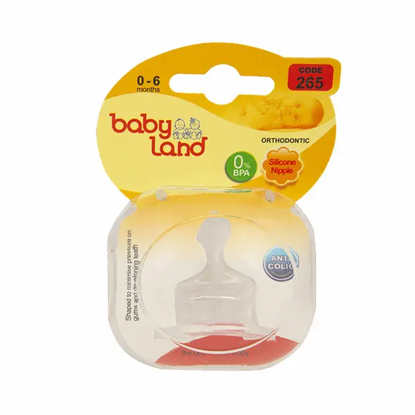 سرشیشه بیبی لند کد 265، مناسب شیشه های کلاسیک می باشد جنس سیلیکونی دارد و مناسب کودکان 0 تا 6 ماه می باشد. سرشیشه بیبی لند کد 265 فاقد مواد شیمیایی مضر و BPA می باشد. به این نوع سرشیشه، سرشیشه ارتودنسی نیز گفته می شود و  طراحی آن‌ها به گونه ای است که هیچ گونه آسیبی و فشاری به فک کودک نمی‌آورد.